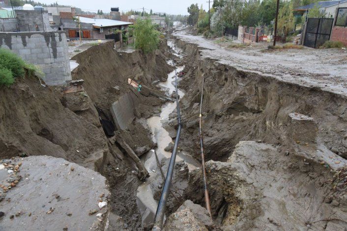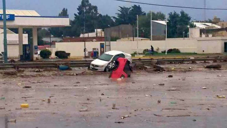 Autos flotando y amontonándose, gente corriendo, animales desorientados y la tierra que comenzaba a agrietarse, abrirse para dejar pasar el agua que no podía absorber el suelo árido de Comodoro.