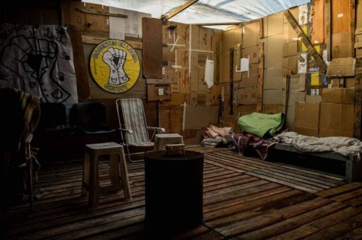 En el lugar el pedido de pallets es permanente para mantener el calor con las fogatas durante la noche y para las casillas que armaron para quienes quieren descansar.