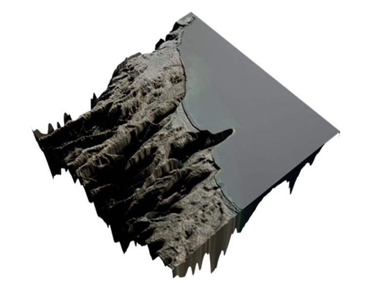 Una instalación artística pensada desde lo digital, busca reinterpretar la geografía y topografía de Rada Tilly, posicionada desde dos perspectivas: el territorio pre humanos y el territorio post humanos.