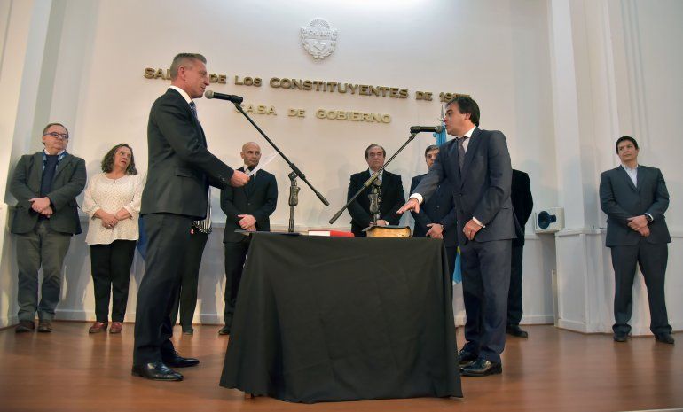 Durante el acto, la escribana general de Gobierno, Liliana Boiero, efectuó la lectura de los decretos provinciales Nº 745 y Nº 742, a través de los cuales se puso en funciones a los nuevos funcionarios, seguidamente el gobernador Arcioni le tomó juramento. Posteriormente los ministros Coordinación de Gabinete, Federico Massoni; de Gobierno, Mariana Vega; de Infraestructura, Gustavo Aguilera; de Educación, Leonardo De Bella; de Familia, Valeria Saunders y de Ambiente, Eduardo Arzani firmaron el acta correspondiente de asunción.