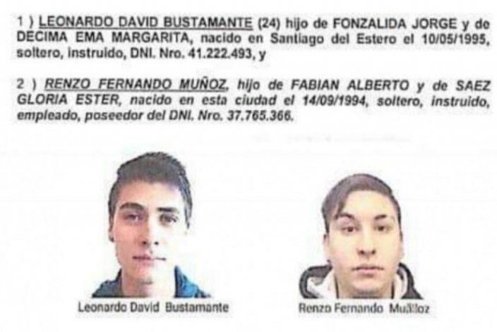 Se trata de Leonardo Bustamante de 24 años y de Renzo Muñoz de 25 años, quienes el sábado a la noche acompañaban a Alexis y hoy son los principales sospechosos de su asesinato.
