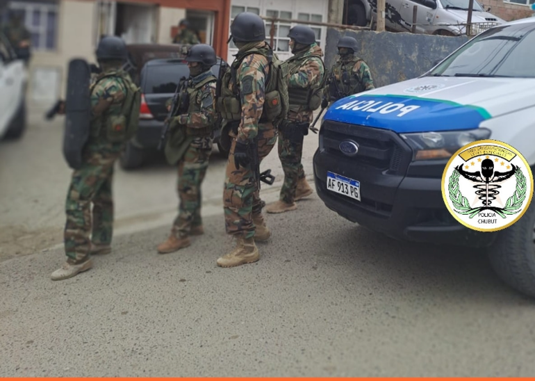 En los procedimientos colaboró personal del Grupo Especial de Operaciones Policiales (GEOP) y de la Unidad Regional de Comodoro Rivadavia.