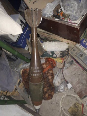 El dueño de la casa conservaba dentro de uno de los cuartos un proyectil activo de mortero de 120 milímetros, con la espoleta sin retirar. La bomba fue retirada por la División de Explosivos de Comodoro Rivadavia y trasladada a la dependencia policial para su destrucción, indicaron fuentes de la Jefatura de Policía del Chubut.