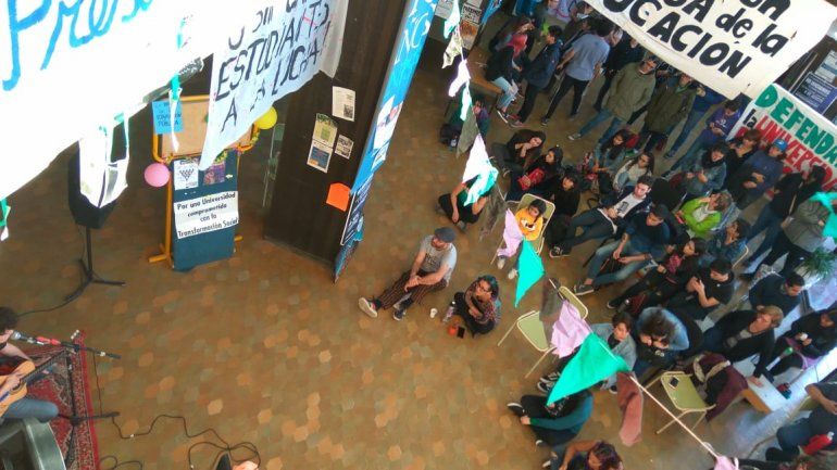 En un duro comunicado leído en la asamblea realizada esta tarde, los estudiantes centraron sus reclamos en los docentes que continúan dando clases pese al paro que se lleva adelante hace más de tres semanas. “Este y esta docente que deciden seguir dando clases mientras sus compañeros hacen paro, es un acto político”, señalaron.
