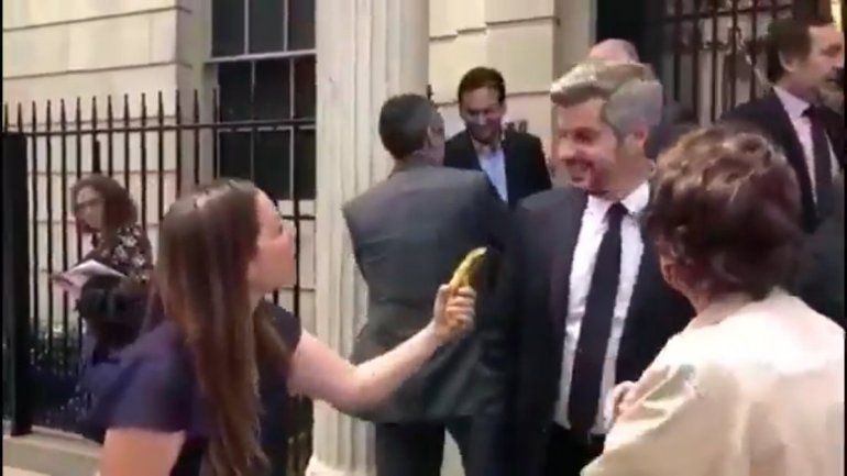 Esa mezcla de sensaciones, dice, fue lo que la empujó a viajar más de dos horas en tren desde la ciudad en donde reside hasta Nueva York. “Sabía dónde iba a estar Peña por una nota que salió en un diario de acá”, contó. Esperó a que Peña terminara su exposición y se retirara para realizar la performance de protesta. Se acercó simulando que quería una foto con él, rescató de su cartera una banana y se la entregó a modo de premio. “El gorila del año”, le ofreció la condecoración, “por haber vetado la ley antiajuste, por hacer morir de hambre al trabajador”. “El premio Gorila del año lleváselo a Macri”, le propuso al jefe de Gabinete antes de que subiera al auto oficial. Un amigo suyo, que vive en Nueva York y la acompañó, filmó todo. El video se viralizó.