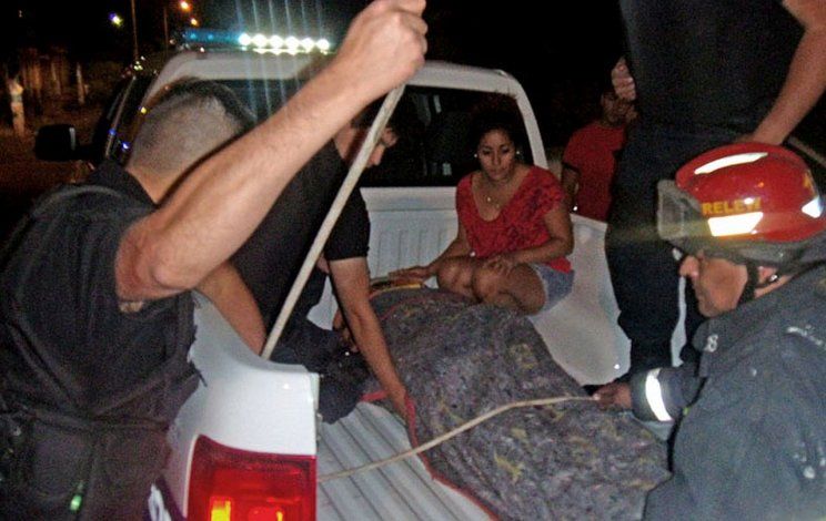 Por esta causa, se decidió convocar a los bomberos que rápidamente se hicieron presentes en el lugar del choque, le prestaron los primeros auxilios a la víctima y con mucho cuidado colocándola en una camilla de madera, la sacaron del vehículo, para luego subirla a la caja de una camioneta policial para trasladarla hasta el hospital público.