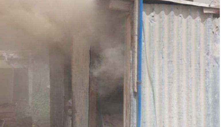Una edificación, construida de material ligero, se prendió fuego este mediodía en el barrio Moure. Sucedió en momentos en que sus habitantes asaban un cordero.