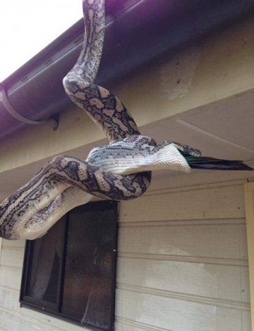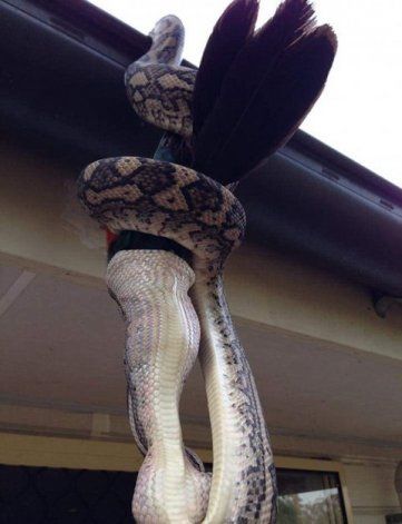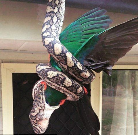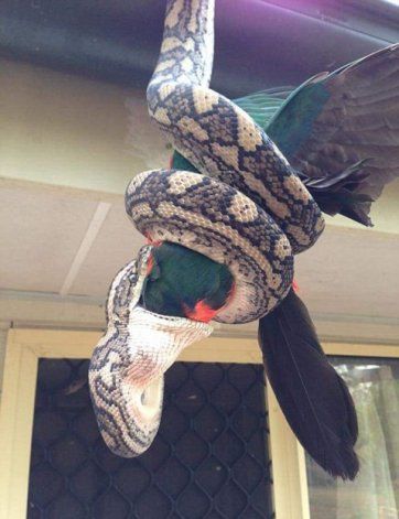 Las fotografías son increíbles y grafican el momento exacto en que una pitón devora un papagayo de gran tamaño en la ciudad costera de Agnes Waters, en Australia. Las imágenes fueron enviadas por el dueño de casa a Stuart McKenzie, un cazador de serpientes que se dedica a recorrer el país en busca de los ejemplares más raros y grandes.