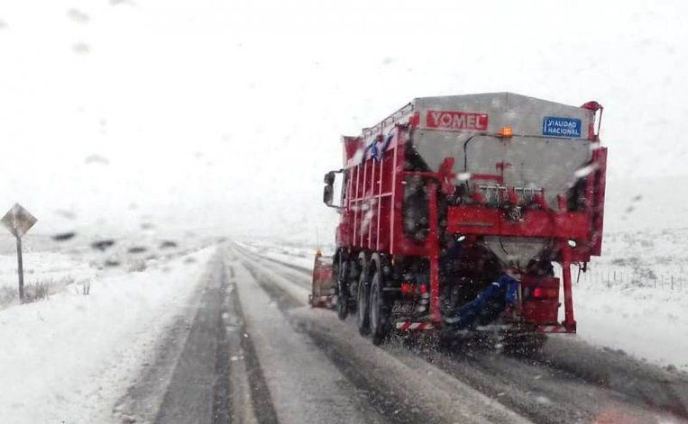 SARMIENTO - CRO. RIVADAVIA PAV T.E.P. HUMEDA NUBLADO CALZADA RESBALADIZA CON HIELO Y NIEVE EN SECTORES - BANQ. CON BARRO- EQUIPOS VIALES TRABAJANDO - NEVANDO EN SECTORES – NEBLINA