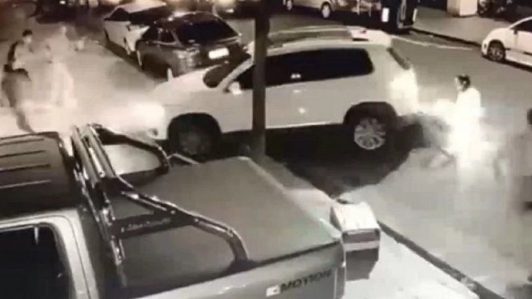 El hecho, que ocurrió la noche del 6 de diciembre pasado, fue difundido en las últimas horas al hacerse públicas las imágenes tomadas por una cámara de seguridad instalada en la zona. El episodio sucedió cuando la familia llegaba a su casa situada en La Pampa al 1900, luego de que padre e hijo buscaran a la mujer en el aeropuerto.