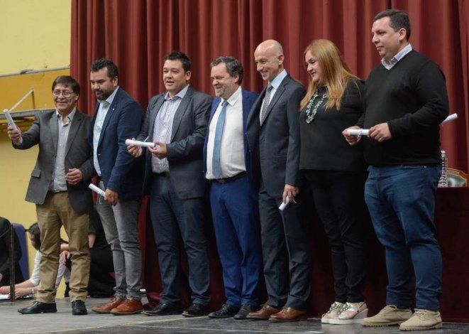 Los nuevos funcionarios de Caleta Olivia que recibieron diplomas fueron Fernando Cotillo, quien asumirá la intendencia el 11 de diciembre, la diputada por pueblo Liliana Toro y los concejales electos Miguel Troncoso, Juan Carlos Juárez, Paola Álvarez, Gerardo Terráz (que finaliza mandato como diputado por distrito) y Gabriel Murúa.