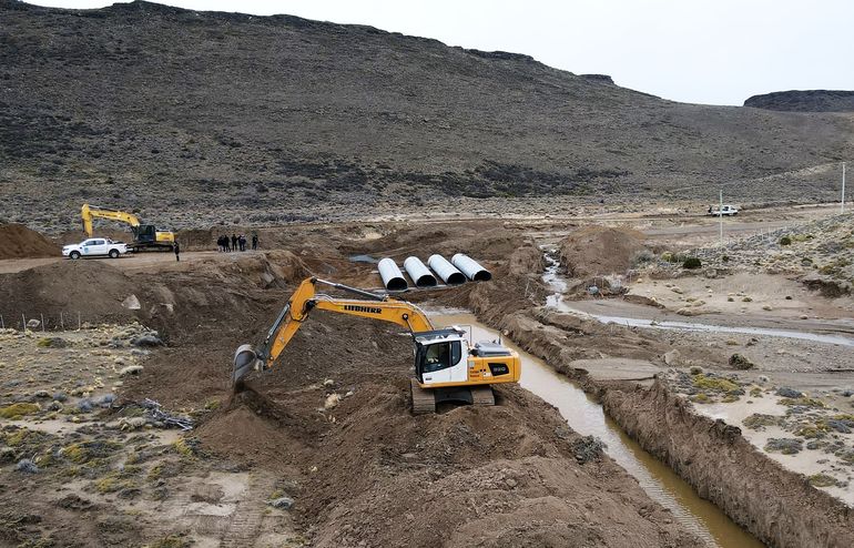 Los trabajos, que cuentan con la supervisión de técnicos e ingenieros del distrito chubutense, se iniciaron con el desvío del cauce de agua para poder trabajar en terreno seco. Esto permitió comenzar a colocar allí el nuevo sistema de alcantarillado -tipo bóveda- que está integrado por 4 alcantarillas de 2,15 m de ancho por 1,55 m de alto y 18 m de largo.