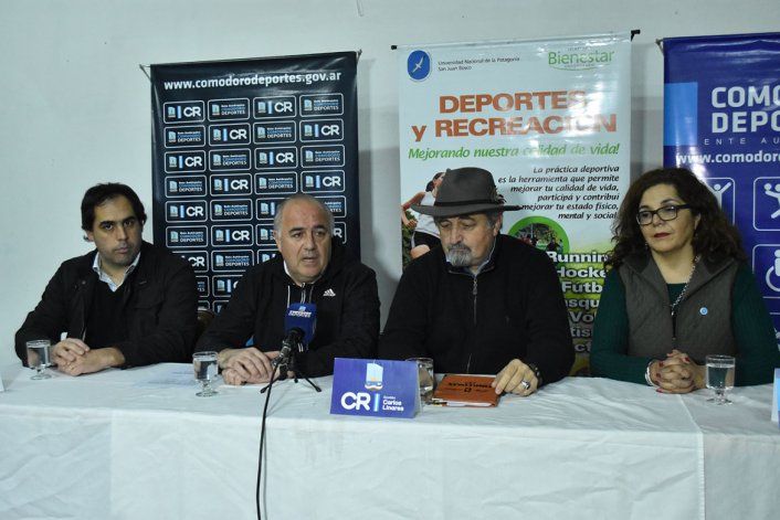 En la presentación estuvieron; Othar Macharashvili, titular del Ente Comodoro Deportes, Javier Lancelotti, director de Deportes de la UNPSJB, junto con Liliana Barrionuevo, Bienestar Universitario y el concejal Maximiliano Sampaoli.