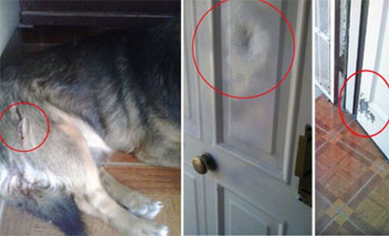 "De repente sentí un estampido, abrí la puerta y vi al perro herido, y a un costado en la puerta unos tiros que son de escopeta. No sabía qué hacer, estaba con mi bebé que tiene 3 meses, le avisé a mi señora, llamamos a la policía que apareció a los quince minutos", relató.