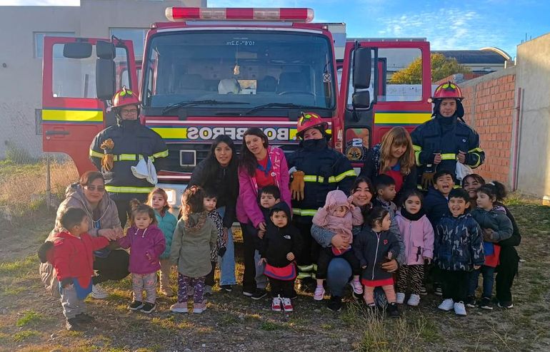 Además compartieron con sus menudos anfitriones una rica chocolatada y un bizcochuelo e incuso invitaron a los pequeños a subir a una de las autobombas, por lo cual el personal del jardín les expresó su profundo agradecimiento .