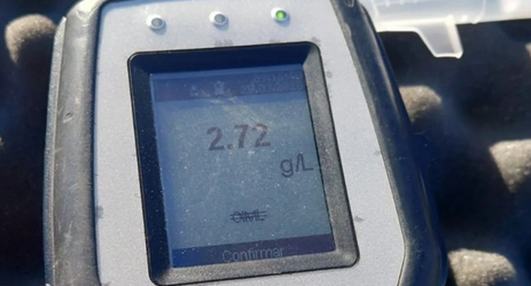 Ya en sede policial, el inspector de Tránsito municipal, Edgar Neira, realizó el alcotest, que arrojó un resultado de 2,72 gramos de alcohol por litro de sangre.