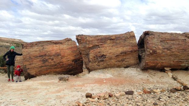 Así fue que millones de años de evolución de la tierra convirtieron esta región, de un bosque templado de altos árboles de coníferas, en un desierto con escasa vegetación. Varios árboles petrificados se las arreglaron para conservarse en pie y con todas sus raíces en el mismo sitio que hace millones de años. Los más altos pueden llegar a medir hasta 35 metros de largo, y tener un tronco con un diámetro de tres metros. Se calcula que muchos de los arboles antes de petrificarse, tenían una edad biológica de por lo menos unos 1000 años.