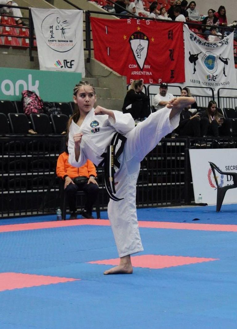 Brianna Barrera, integrante de la escuela Grupo Taekwondo Patagonia, compitió en el IX Campeonato Centro y Sudamericano de Taekwondo ITF que se realizó a fines de junio en Asunción, Paraguay.