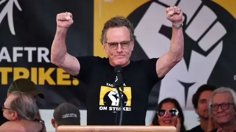 La estrella de Breaking Bad, fue uno de los oradores en el SAG-AFTRA “Rock the City for a Fair Contract” y declaró : “Tenemos un mensaje para el Sr. Iger: sé, señor, que ve las cosas a través de una lente diferente. No esperamos que entiendas quiénes somos. Pero les pedimos que nos escuchen, y más allá de eso, que nos escuchen cuando les decimos que no nos van a quitar el trabajo y dárselo a los robots. No permitiremos que nos quiten nuestro derecho a trabajar y ganarnos la vida decentemente. Y por último, y lo más importante, ¡no permitiremos que nos quiten la dignidad! Somos sindicato, de principio a fin, hasta el final. ¡Somos sindicato, de principio a fin, hasta el final!”