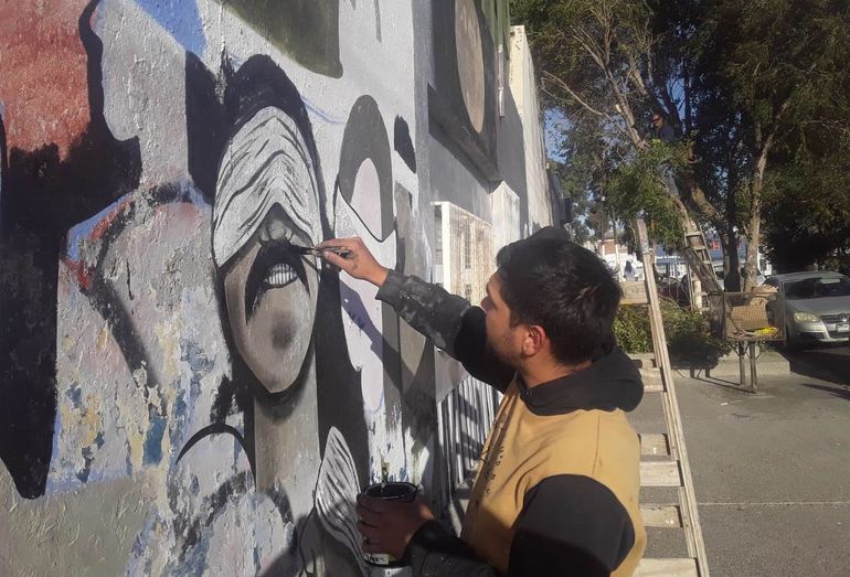 En cercanías de ese lugar, un grupo de jóvenes de la UCR se encontraba restaurando un mural alusivo la fecha, precisamente sobre un paredón de la avenida Monseñor Fagnano, a pocos metros de sucursal del Banco Macro.