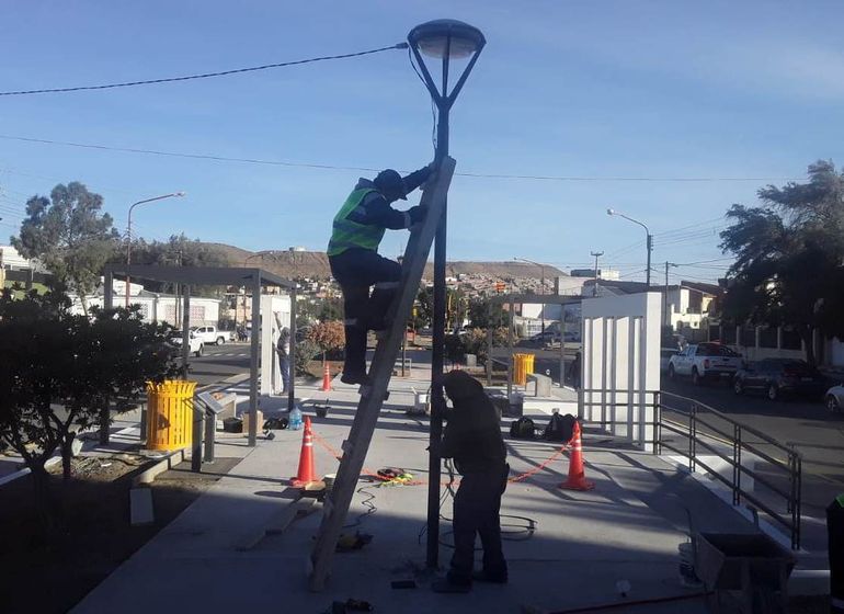 Promediando la tarde de este jueves, obreros de dos empresas particulares, ultimaban los detalles de la obra que básicamente está representada por dos pórticos. En uno de ellos se sintetiza la historia de algunos vecinos caletenses que fueron víctimas de los años de plomo.