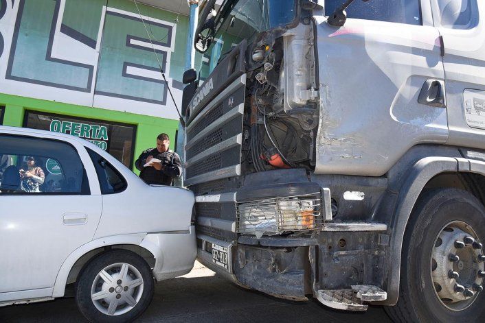 Un camión Scania -dominio GGZ 818- con acoplado cargado de gaseosas que llevaba a Río Gallegos por ruta nacional 3, embistió en la parte trasera a un Chevrolet Corsa en el ingreso al Centro de Comodoro Rivadavia por calle Güemes, antes de San Martín, y lo arrastró por 15 metros.