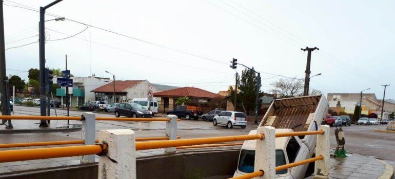 A las 2:20 de este lunes, el conductor de una Pick Up Peugeot 504, patente TAI 997 que circulaba por avenida Roca habría perdido el control del rodado y cayó al canal evacuador.