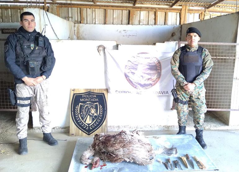 La policía secuestró el ñandú y dio intervención a la Dirección de Fauna y Flora Silvestre del Chubut, con asiento en Rawson. Los cazadores furtivos fueron identificados por la policía como Kevin Alexander Díaz y José Luis López.