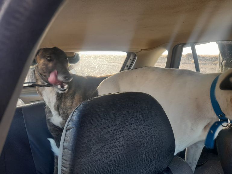 Al parar la marcha del VW Gol los efectivos observaron a simple vista que los dos ocupantes llevaban dos perros galgos. Al revisar el baúl encontraron un ñandú patagónico con distintas lesiones en el cuerpo.