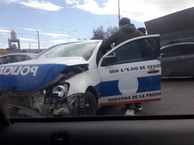 Este mediodía, alrededor de las 13 horas, con movimiento incesante en Avenida Yrigoyen, se produjo un fuerte choque entre un patrullero y un vehículo, un Toyota Corolla. El patrullero quedó con el frente completamente destruido y el Corolla tras varios tumbos quedó sobre un bulevar.