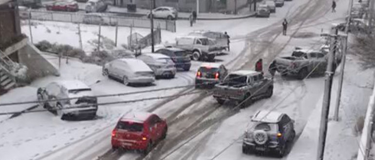 En un video que comenzó a circular en redes sociales, se observa a al menos cinco vehículos con complicaciones para desplazarse en la calle San Martín. Algo similar se pudo ver en la avenida Rivadavia, en pleno centro de Comodoro.