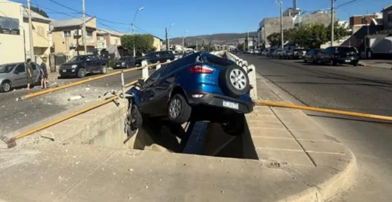 Un accidente de tránsito sin personas lesionadas alteró la calma del domingo por la mañana en la esquina de las avenidas Roca y Canadá. Minutos después de las 9, el conductor de una Ford EcoSport perdió el control y terminó impactando contra un conducto cloacal ubicado en el sector.