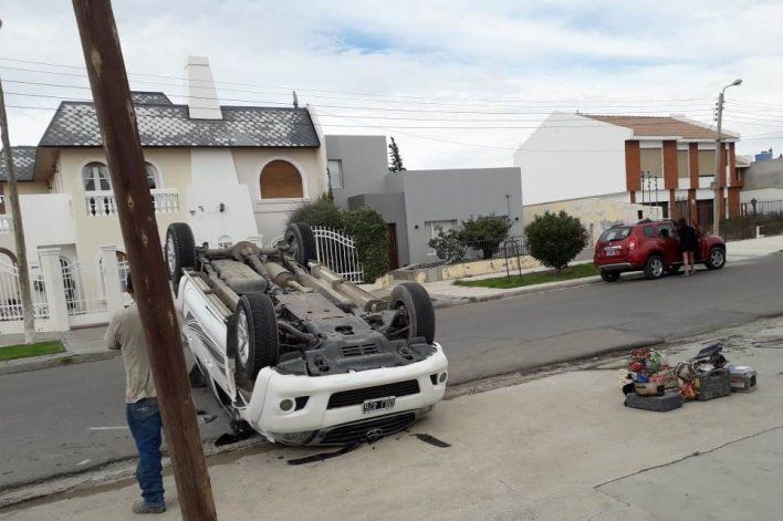 Se trata de una camioneta Toyota Hilux (patente OBJ 426) y un Chevrolet Onix (dominio AA-035-UR) que- por razones que se intentaban establecer- chocaron y, por el fuerte impacto, la camioneta volcó quedando con parte superior invertida sobre el suelo.