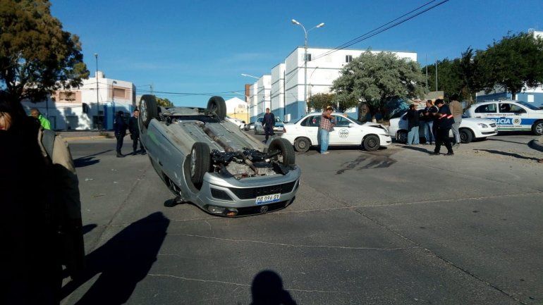 Esta mañana, sobre San Martín y Alsina, se registró un choque y vuelco. Los protagonistas del accidente fueron un Volkswagen Gol y un Chevrolet Classic de una agencia de Taxis-