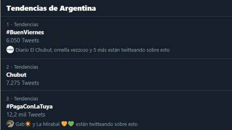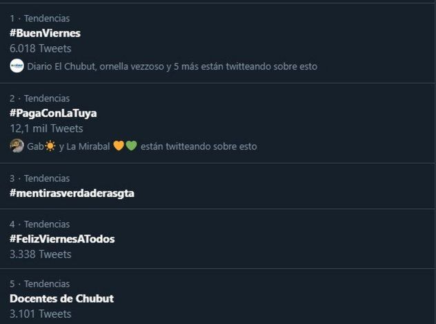 Por éste motivo Las palabras clave “Chubut”, “Docentes de Chubut” y “Arcioni” fueron tendencia en la red social Twitter a nivel nacional. Incluso la palabra Chubut alcanzó el segundo puesto en el ránking, siendo poco frecuente esto ya que el monopolio de las tendencias se centra en la ciudad y provincia de Buenos Aires.