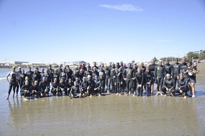 Un mediodía a pleno, y alrededor de ochenta personas en el agua fue el marco con el cual se llevó a cabo la "Travesía Día del Guardavidas" en la costanera local.