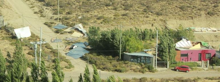 La guardia municipal de Defensa Civil concurrió pasadas las 19 a atender las consecuencias de las dos casas prefabricadas que se llevó el viento. Las mismas habían sido recientemente colocadas en un loteo del barrio El Atardecer, en el suroeste de la ciudad. Los vecinos alertaron primero que se habían volado ambos techos, pero las fuertes ráfagas derribaron las construcciones completas.