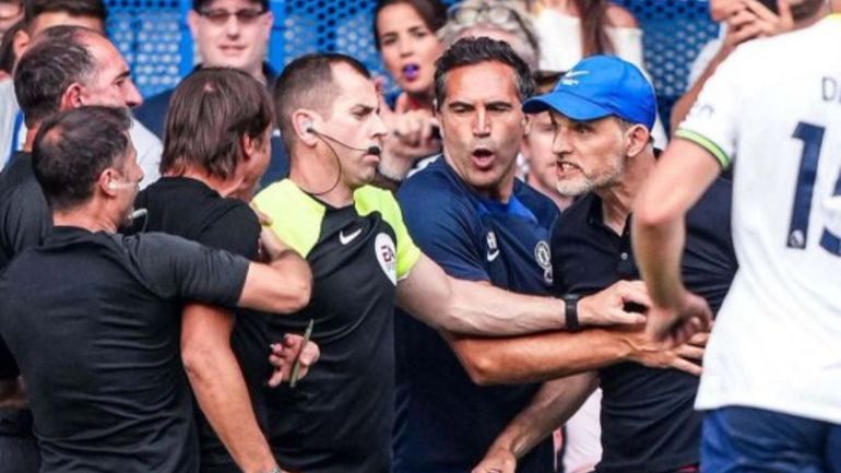 La historia del derby entre los clubes londinenses pasó por el duelo entre el alemán Thomas Tuchel -DT del Chelsea- y el italiano Antonio Conte -DT del Tottenham-. Es que cuando la visita llegó al 1 a 1, a los 68 minutos, los dos técnicos se cruzaron y llegaron a pechearse, con el cuarto árbitro en el medio de ambos.