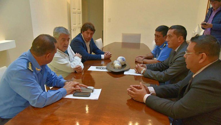 "Los felicito por el trabajo que están haciendo" expresó el gobernador de la provincia a los integrantes de la cúpula policial que se reunieron con el mandatario en la Residencia Oficial pasadas las 17.30.