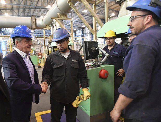 El mandatario recorrió, junto a funcionarios de primera línea del ministerio de Producción de nación, las instalaciones de la empresa Exal Group que produce tejos de aluminio que luego se convierten en envases y en desodorantes para la industria cosmética.