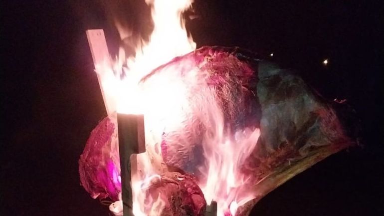 La carne decomisada fue incinerada en presencia de los testigos y del personal actuante, integrado por el sargento Alejandro Flores y la sargento Noemí Cartagena.
