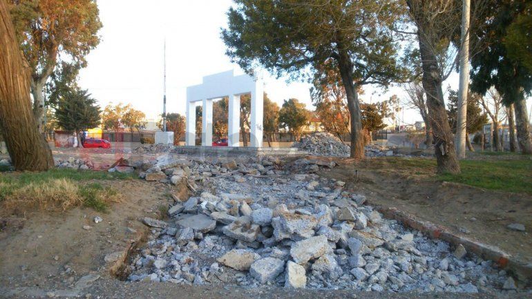 En la foto se puede apreciar que las veredas del interior de la Plaza fueron destruidas y los escombros nunca fueron retirados.