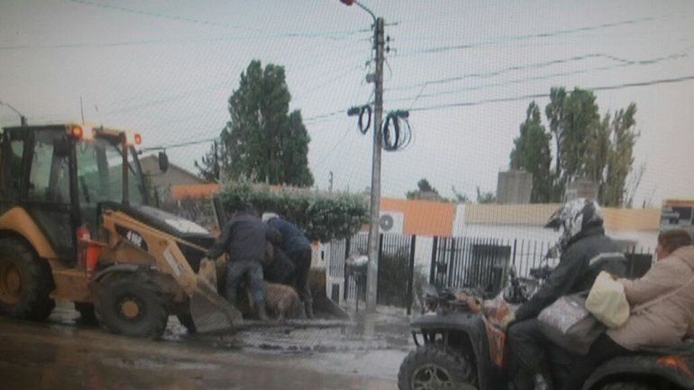 Eran las 12:30 cuando distintas máquinas viales sacaban barro de los alrededores del Gimnasio Municipal N° 2. Los gritos desesperados de los tres adultos mayores alertaron a dos de los maquinistas y a un hombre que circulaban en un cuatriciclo por la avenida Kennedy y Díaz Vélez del barrio Pueyrredón.