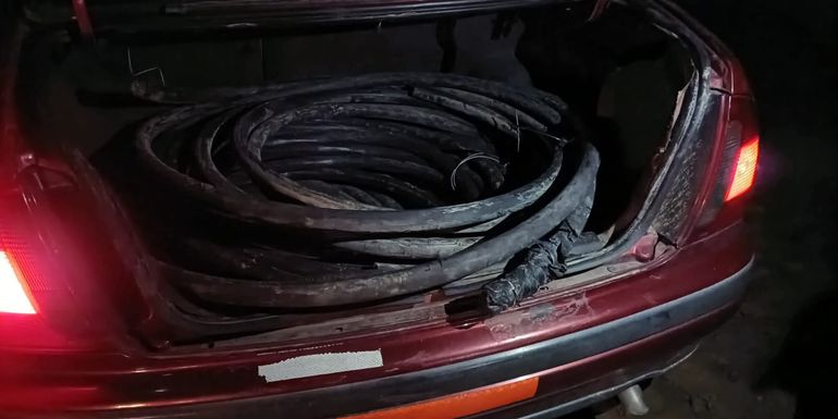 En el interior del vehículo, los efectivos encontraron tres rollos de cable de cobre de 3 x 70 mm2, que pesaban aproximadamente 200 kilos, así como elementos de corte. Al inspeccionar el almacén, se constató que habían cortado parte del cable de un carretel de madera y que habían tirado el alambrado perimetral.