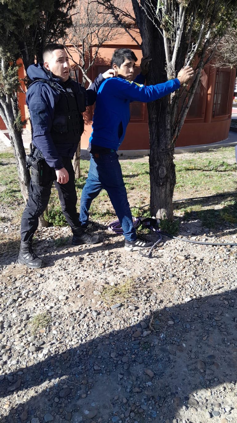 Tras realizar un rastrillaje por la zona, localizaron a media cuadra a un hombre que llevaba consigo restos de cables, por lo que procedieron a su detención. El sospechoso fue identificado como Brian Ezequiel Chicahuala, de 23 años, quien fue trasladado a la sede policial.