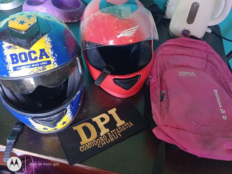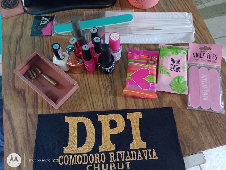 Desde las 13 de este martes se realizó un allanamiento y registro domiciliario en la vivienda ubicada en Pasaje 13 de Diciembre S/N, barrio Pietrobelli, donde residen LGI y UMS, ambos de 25 años. En el lugar se secuestraron 5 frascos de esmalte marca Charm Limit; un par de zapatillas talle 43 de color blanco; un par de zapatillas de color negro marca Fila, talle 41; una campera de colores negro y verde con inscripción EDVSA; un pantalón de jean de color azul; un cartucho a bala calibre 38 SPL CBC; 4 cartuchos a bala calibre 22 con la inscripción OA IFM; un casco de color azul y amarillo con escudo del club Boca Juniors; un casco de color rojo con inscripción “Alcon”; y una mochila de color rosado, marca Gremond, con la inscripción “AOMA Santa Cruz”.