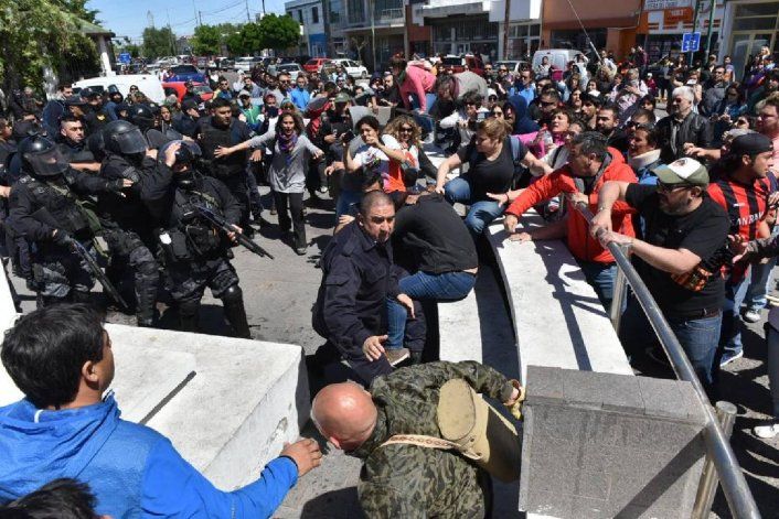 Minutos antes del mediodía, en medio de incidentes que se generaron en inmediaciones de Casa de Gobierno en Rawson, la Policía del Chubut detuvo al secretario general de ATECh, Santiago Goodman.