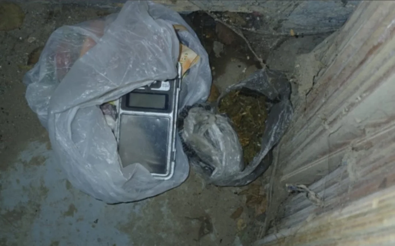 Durante la inspección en el domicilio, los efectivos observaron junto a la puerta de entrada una bolsa de nylon transparente con una sustancia verdosa y una balanza de precisión. Ante esta situación, convocaron a testigos y a la División de Drogas Peligrosas y Leyes Especiales, que confirmó que se trataba de cannabis y clorhidrato de cocaína.