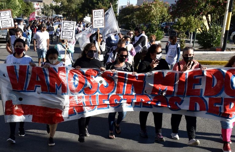 A ello la suma que “no se respeta el derecho a huelga y pretenden que los directivos de escuelas asuman roles de que le corresponden a autoridades sanitarias”, expresó Alegre momentos antes de la marcha que se inició y finalizó en la plazoleta del Gorosito.