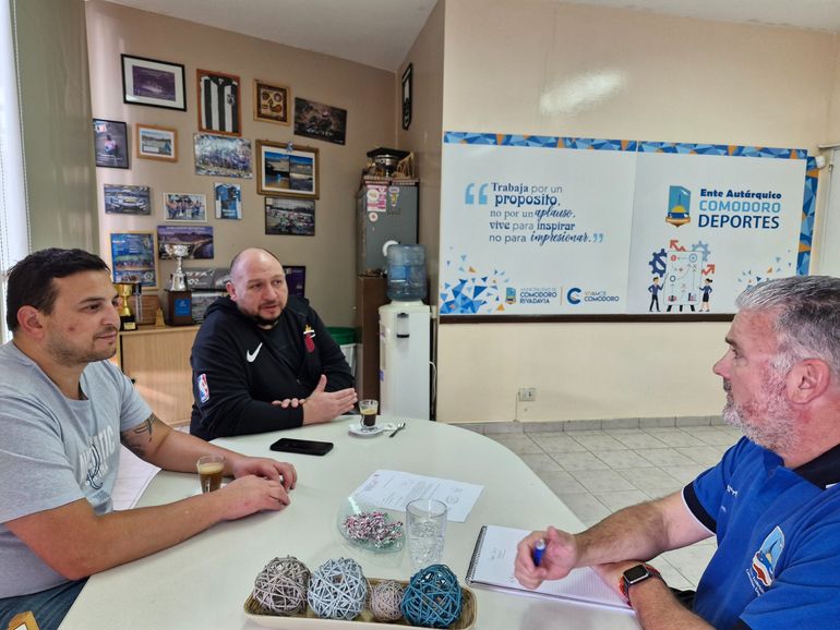 Fernando Milkovic y Pablo Fuentes, tesorero y coordinador general de la Asociación Deportiva Santo Domingo Savio, respectivamente, mantuvieron un encuentro con el presidente del Ente Autárquico Comodoro Deportes, Hernán Martínez, con el cual se ratificó el acompañamiento del Estado municipal.
